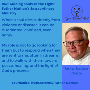 Though he never sought out this sacred work, Father Nathan has come to believe it is a healing ministry given to him by the Holy Spirit. With prayer partners by his side, he compassionately guides these souls in releasing trauma and crossing over into the Light.